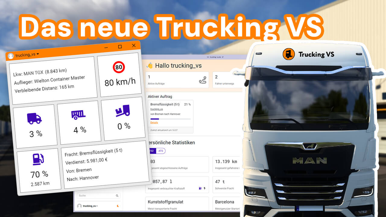 Trucking VS hilft dir bei der einfachen Verwaltung deiner Fahrer und Aufträge. Mit Trucking VS kannst du alles in Echtzeit verfolgen und erhältst so wertvolle Einblicke und Statistiken, die deiner virtuellen Spedition zum Erfolg verhelfen.